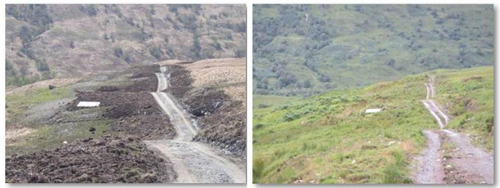 Before and after restoration of the track at Glen Falloch